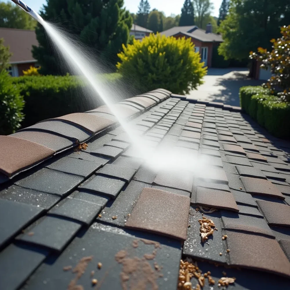 We use soft-wash techniques to safely remove black streaks, moss, and algae, protecting shingles while extending your roof’s lifespan.